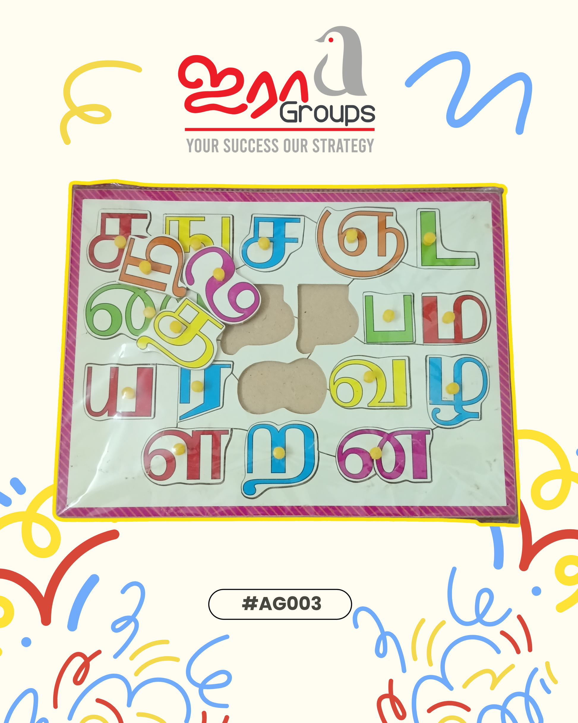��������� Knob Board ���"826" data-end="1165">Introduce your child to Tamil language learning with our ��������� Knob Board ��� Big, a thoughtfully designed wooden educational board that helps kids recognize and learn basic Tamil letters through hands-on play. Each Tamil letter (���, ���, ���) comes with a smooth, easy-to-grip knob, making it simple for little hands to "1167" data-end="1377">The big size board provides clear visibility and ample space, helping children improve Tamil letter recognition, hand-eye coordination, and fine motor skills while enjoying screen-free learning.
